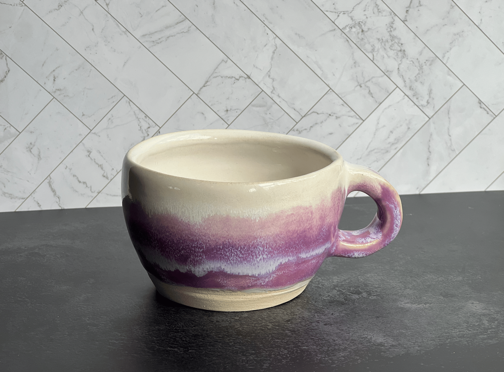 Purple and white drip color mug